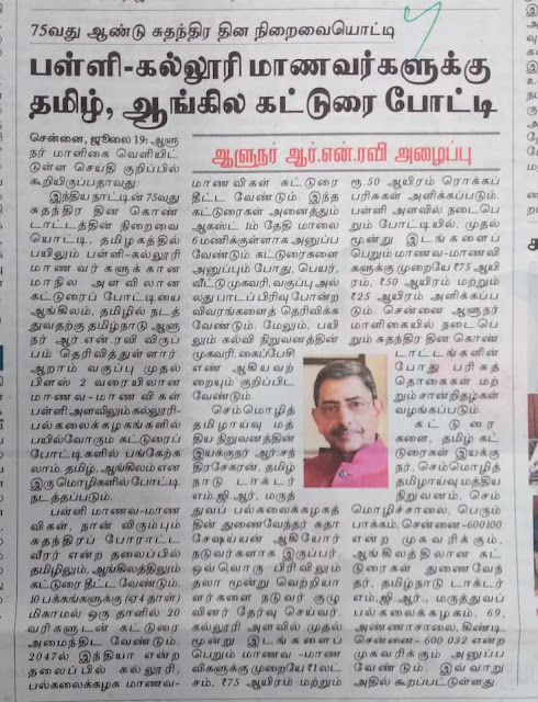 மாணவர்கள் கல்விக் களஞ்சியம் இணையதளத்திற்கு தங்களது கட்டுரைகள் (அறிவியல், பொருளாதாரம், இலக்கியம்), கவிதைகள், சிறுகதை என அனைத்து  படைப்புகளையும், p.ramesh704@gmail.com  மெயில், அல்லது 9489666102 வாட்ஸாப்ப்  அனுப்பிட வேண்டுகிறோம்.